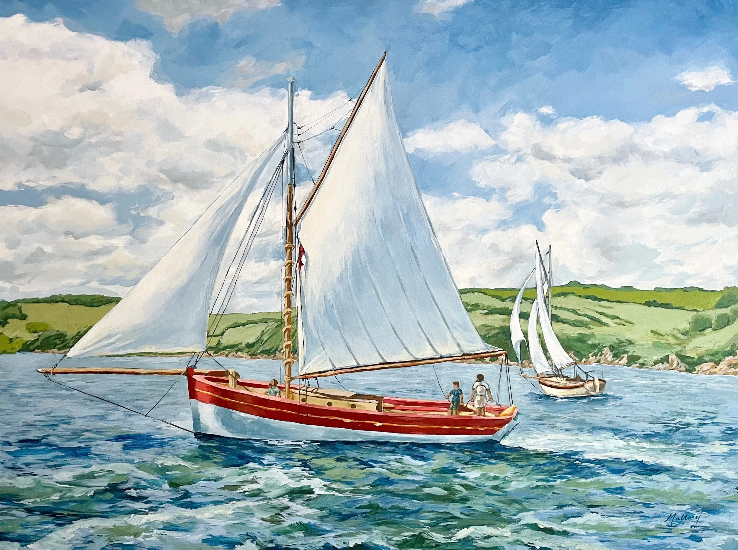 Each painting captures a moment where nature’s quiet beauty meets the adventure of exploration. Billowing sails, rippling currents, and the drift of God’s creatures or man’s vessels invite the viewer to pause and imagine the stories unfolding within each scene. Or perhaps the viewer will become awakened to such subtleties now in his everyday human experience as a partaker in God’s glorious creation.