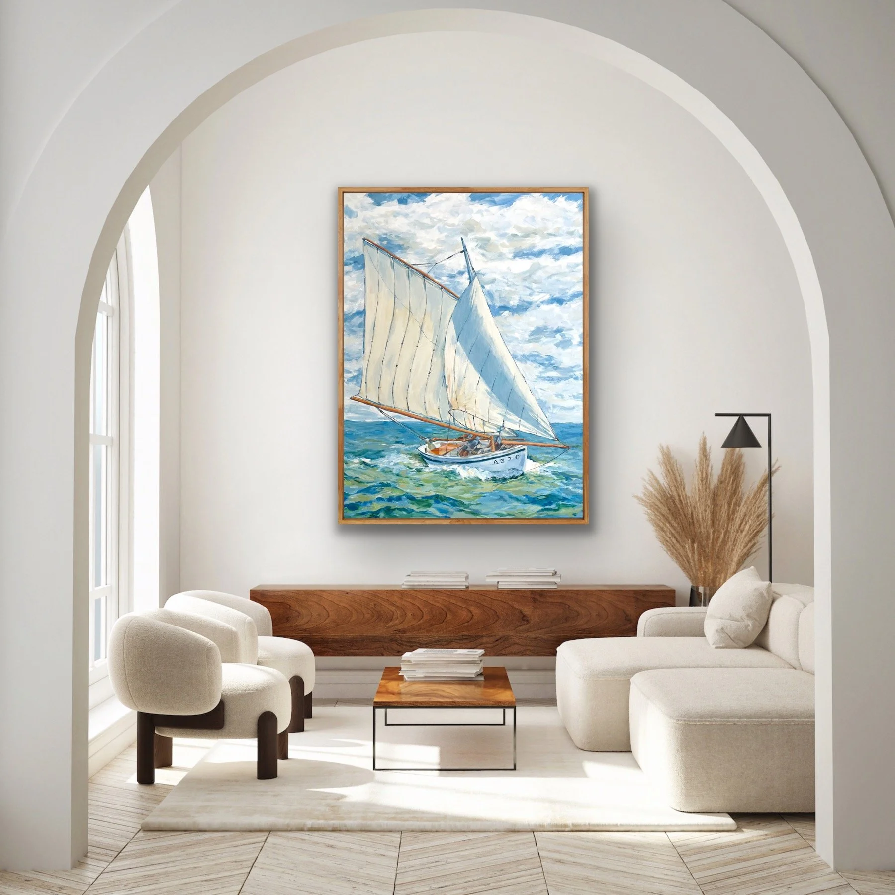 With vibrant, impressionistic brushwork of the Post-Impressionists such as Vincent van Gogh, and a color palette reminiscent of American Impressionist painter William Merritt Chase or French Impressionist Alfred Sisley, Swans + Sails invites you to step into a world that feels both nostalgic and alive—a place where we all take the helm under the majesty of God’s creation and are in complete awe.